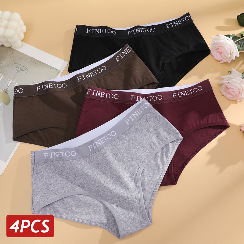 4PCS/Set Cotton Solid Color Women Panties – Low Rise Briefs with Letter Waist